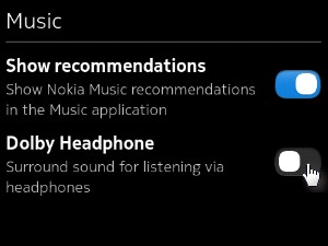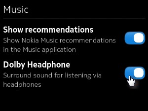 Sedaj pa pritisnite na stikalo pri možnosti Dolby Headphone.