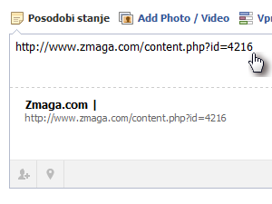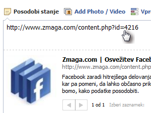 ![]() Če gremo sedaj nazaj na Facebook in vpišemo isto povezavo, bomo videli, da so slika, naslov in opis sedaj res osveženi z zadnjimi podatki. |