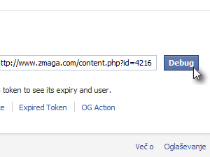 ![]() Če pa želite ohraniti originalni URL naslov, pa je najboljši način, da uporabite Facebook Debugger. |