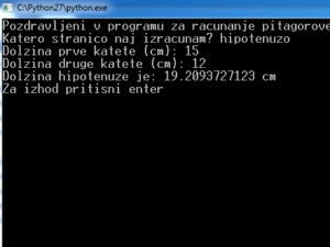 No, da pa doma ne boste počivali poskusite narediti 2 programčka - namreč enega, ki vam bo na danih podatkih izračunal vrednost hipotenuze ali katete ...