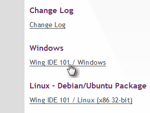 Sedaj pa potrebujemo še brezplačni urejevalnik za ta jezik imenovan WING IDE 101.