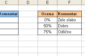 ![]() Na desni strani razpredelnice sem ustvaril tabelo z podatki, ki prikazujejo ocene in komentarje za njih. |