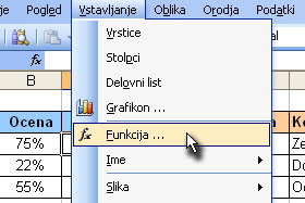 ![]() Kliknite na Vstavljanje in ozberite Funkcija ... |