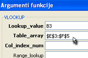 ![]() V polju Table_array dodajte še znak za dolar pred vsako oznako (glej sliko). |