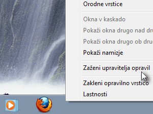 Najlažje Upravitelj opravil zaženemo tako, da na orodni vrstici s programi z desnim miškinim gumbom kliknemo na prazen prostor in izberemo opcijo Zaženi upravitelja opravil.