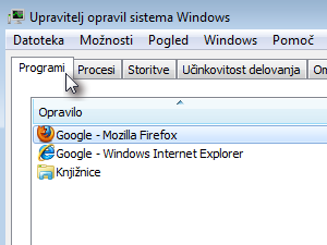 ![]() V najbolj levem zavihku Programi bom našli vse trenutno odprte aplikacije, ki uporabljajo grafični vmesnik. |