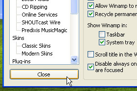 Winamp se sedaj nahaja samo v sistemski vrstici (glej sliko).