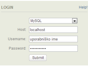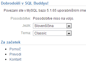 Vmesnik odprete z obiskom URL naslova, kamor ste naložili vmesnik (http://www.x.com/sqlbud). Prijavni podatki so enaki tistim, ki jih uporabljate za povezavo z MySQL bazo.