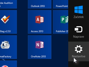 Potem pa se z miško pomaknite v zgodnji ali spodnji desni rob, da se vam prikažejo dodatne možnosti in izberite Nastavitve.