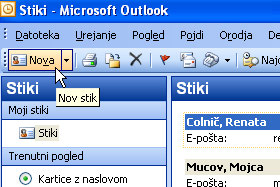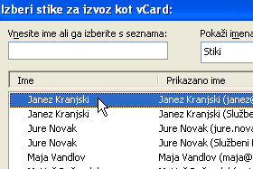 Prikažejo se vsi shranjeni stiki, kjer bomo ustvarili novega.