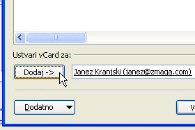 V novem sporočilu boste opazili priloženo vcard datoteko, kjer se nahajajo vsi podatki, ki ste jih prej vpisali.