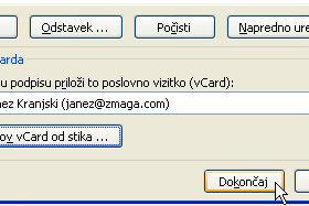 Sedaj bomo preverili ustvarjen podpis z dodatno vizitko.