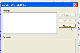 Kliknite na gumb Novo ... Če imate že ustvarjen podpis, ga označite in kliknite na gumb Urejanje. |
