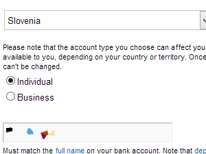 V naslednjem koraku morate vnesti državo, tip računa, insvoje podatke za bančna nakazila.