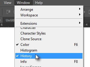 ![]() Sedaj bi morali imeti ponovno prazen dokument. Vsi ti koraki so tudi vidni v posebnem oknu, ki ga pokličete tako, da kliknete zgoraj na Window in izberete History. History mora biti označen.