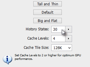 ![]() Photoshop pa privzeto v oknu History beleži le 20 korakov, kar pa lahko spremenimo, vendar bo to vsaj delno vplivalo na delovanje vašega računalnika. Kliknite zgoraj na Edit, Preferences in izberite Performance... V novem oknu v polju History States določite poljubno število korakov, za katere želite, da Photoshop vodi zgodovino in kliknite na gumb OK. |