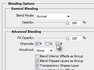 V novem oknu odstranite G in B kanala (glej sliko): G predstavlja zelene in B modre barve. |