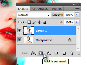 Dodajte masko tako, da kliknete na ikono add layer mask (glej sliko).