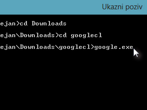 Če želite na primer odpreti mapo downloads, napišite cd download, če želite nazaj, pa napišite cd ... ter potrdite s tipko Enter. Ko boste v pravi mapi, vpišite google.exe in pritisnite tipko Enter.