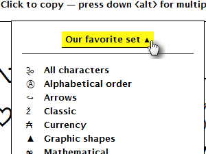 ![]() Znak enostavno skopiramo tako, da nanj kliknemo z miško. |