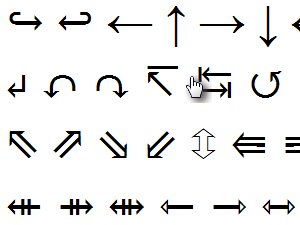 ![]() Če tako npr. izberemo skupino Arrows, dobimo obširen seznam različnih puščic. |