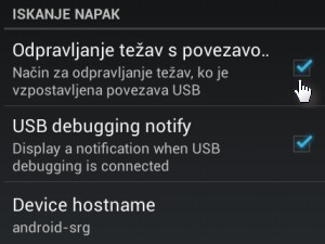 Naslednji korak je, da na telefonu omogočite Odpravljanje težav s povezavo oz. angleško Android debugging.