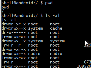 Android temelji na Linux operacijskem sistemu in lahko tako sedaj uporabljate večino Linux ukazov. Opis ukazov lahko najdete v lekciji Osnove dela z Linux terminalom. Na računalnik se vrnete z ukazom exit |