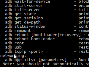 V kolikor pa vpišete samo ukaz adb, pa dobiti izpisan seznam vseh ukazov, ki jih podpira adb ter se z njimi lahko malo poigrate.