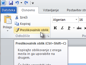 ![]() Označeni tekst bo avtomatsko prevzel obliko prvotno označenega teksta. |