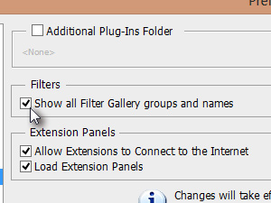 Odpre se vam novo okno, kjer označite Show all Filter Gallery groups and names.