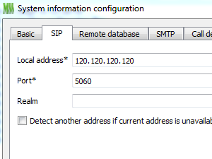 V primeru, če želite imeti zunanjo povezavo do VoIP strežnika, kliknite na System, nato SIP ter popravite oz. vnesite zunanji IP naslov.