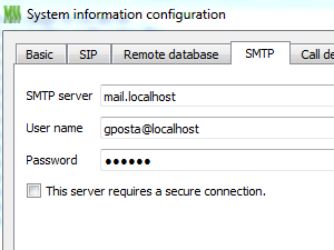 SMTP se bo uporabljal ob pošiljanju glasovne pošte na email naslov. Nastavitve shranite s klikom na OK. |
