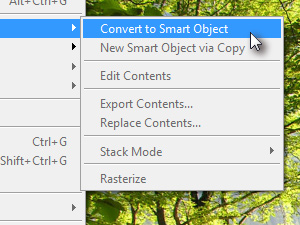 Kliknite zgoraj na Layer, Smart Objects in izberite Convert to Smart Object. |