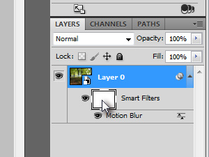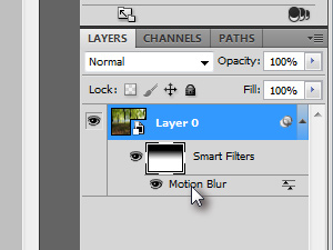 Sedaj bomo filter Motion Blur prilagodili tako, da bomo dvakrat kliknili nanj (glej sliko).