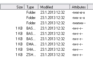 Pravice so naslednje: r - dovoljeno branje (Read) w - dovoljeno spreminjanje (Write) x - dovoljeno izvrševanje (eXecute) Prva črka določa tip datoteke (d označuje direktorij oz. mapo), nato pa se pravice rwx trikrat ponovijo. Prva skupina določa uporabnika. Druga določa skupino, kateri pripada uporabnik. Tretje skupina določa vse ostale uporabnike. V primeru na sliki ima tako do prve datoteke dostop samo uporabnik, ki je ustvaril datoteko. Do druge datoteke ima dostop skupina, kateri pripada uporabnik. Do tretje datoteke pa imajo dostop vsi. |