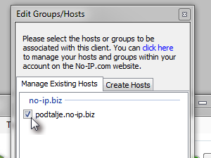 Tako boste lahko preko domenskega imena (v mojem primeru podtalje.no-ip.biz) vedno lahko dostopali do računalnika, tudi v primerih, ko se naslov IP na vašem računalniku spreminja. |