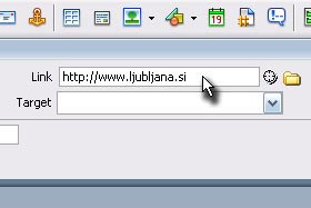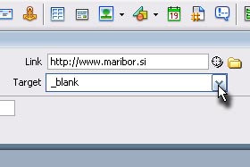 Spodaj v polje Target pa preko vmesnika določite _blank, kar pomeni, da se bo spletna povezava odprla v novem oknu. |