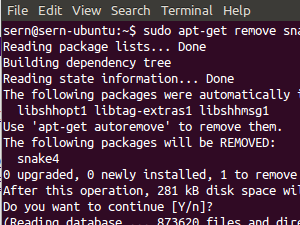 S spodnjim ukazom tako lahko npr. odstranimo igro snake4 sudo apt-get remove snake4 |