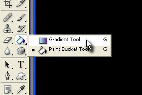 Potem pa izberite orodje Gradient Tool. Držite z miško na orodju Paint Bucket Tool (bližnjica je tipka G), da se vam prikažejo ostala orodja. |