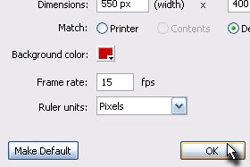 Določite poljubno barvo za ozadje in nastavite Frame rate na 15 fps.