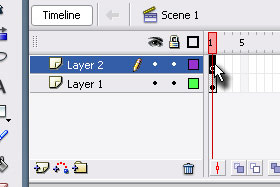 V polju Timeline kliknite na prvi frame za Layer 2 (glej sliko). |