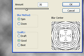 Odpre se novo okno. Amount nastavite 35, Blur Method Spin in Quality Good. Kliknite na gumb OK. |