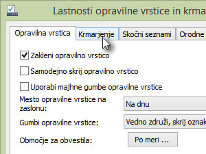 V oknu za nastavljanje opravilne vrstice kliknite na zavihekKrmarjenje.