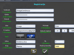 ![]() Izpolni podatke. Če ne želiš, ti ni treba vnesti pravih podatkov, ampak v tem primeru ne boš mogel dobiti nagrad. Podatke lahko spremeniš pozneje. To je to! Ski Challenge je naložen in imaš ustvarjen račun. Sedaj lahko začneš smučati!