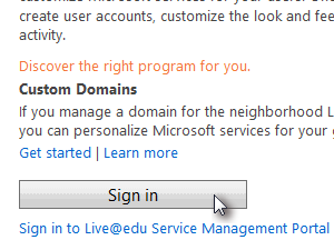 ![]() Odprite spletno stran Windows Live Admin centra. |