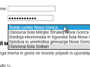 ![]() Izberite vašo izobraževalno ustanovo. Bodite pozorni, saj so nekatere šole iz istega kraja združene v eno kategorijo (npr. vse novogoriške šole boste dobili pod Kampus Nova Gorica). |