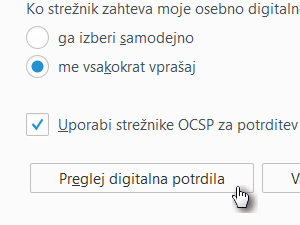 ![]() Kliknite na gumb Preglej digitalna potrdila. |