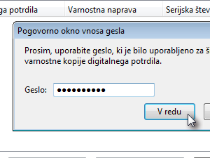 ![]() Prikazalo se bo okno, kjer vpišete geslo.