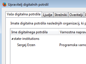 ![]() Prikazala se vam bo stran, kjer bodo prikazana vaša trenutna digitalna potrdila.