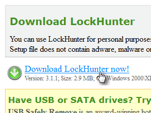 Kliknite na povezavo Download LockHunter now, da namestitveni program prenesete na svoj računalnik.